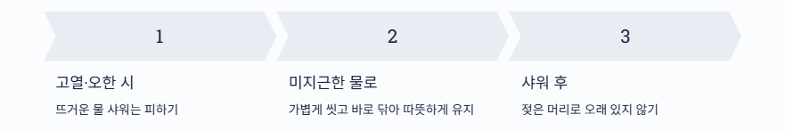 • 샤워 후 젖은 머리로 오래 있지 않기