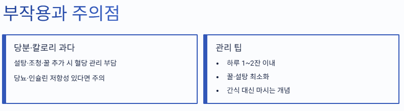 - 너무 달게 마시면 오히려 혈당이 출렁일 수 있으니