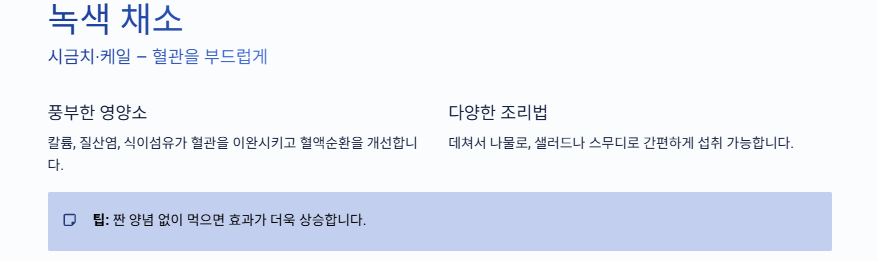2. 시금치·케일 같은 녹색 채소 – 혈관을 부드럽게