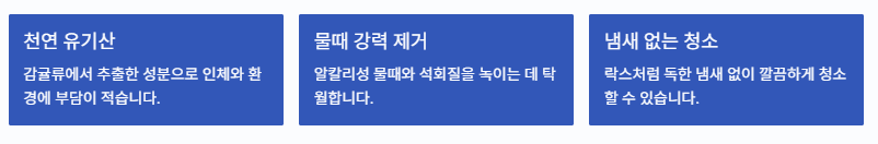 구연산 하나로 상당 부분 대체가 가능합니다. - 피부·호흡기 부담이 상대적으로 적은 편