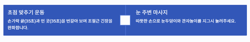 - 초점 전환 운동·눈 주변 마사지로 근육 이완