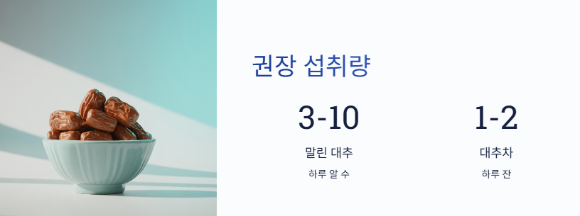 - 말린 대추 기준 하루 3~10알, 대추차 1~2잔 정도로 적당히