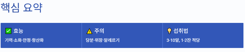 - 소화 보조: 비위(소화기)를 부드럽게 해 주는 전통 약재
