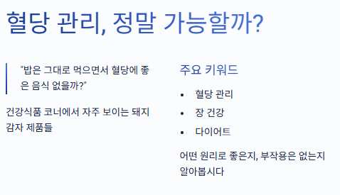 특히 혈당 관리, 장 건강, 다이어트 같은 키워드와 함께 등장하다 보니