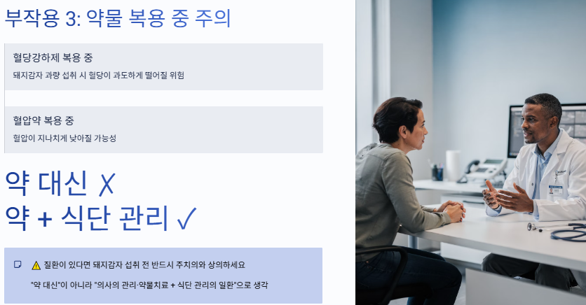“의사의 관리·약물치료 + 식단 관리의 일환”으로 생각해야 합니다.