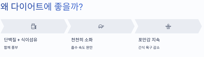 - 복합 탄수화물 + 풍부한 식이섬유 덕분에