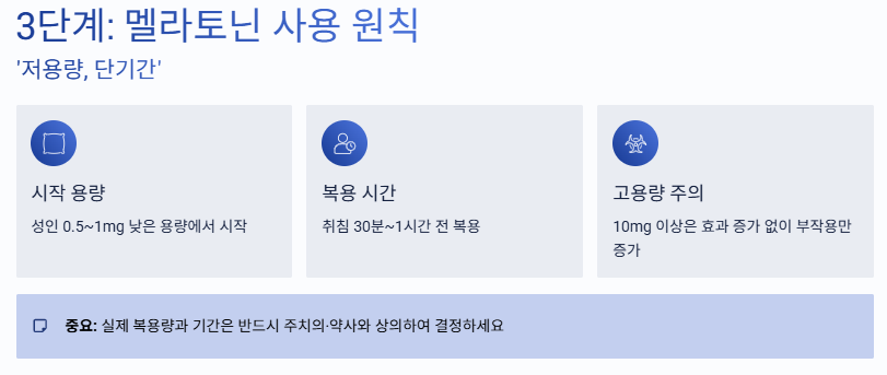 3단계. 멜라토닌을 쓴다면 – ‘저용량, 단기간’ 원칙
