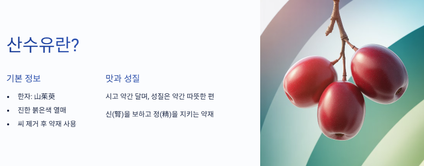 물론 이것이 **“산수유만 먹으면 허리통증이 해결된다”**는 의미는 아니고,