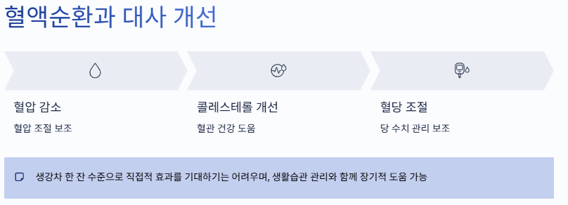 “생활습관 관리 + 적당량의 생강 섭취가 장기적인 혈관 건강에 도움을 줄 수 있다” 정도로 이해하시는 것이 적절합니다.