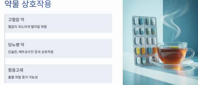 - 속쓰림·설사, 출혈 위험, 혈압·혈당 과도 저하 가능성