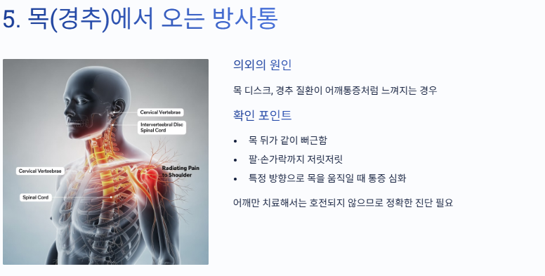 단순 어깨 문제가 아니라 목에서 시작된 신경 압박일 가능성도 있습니다.
