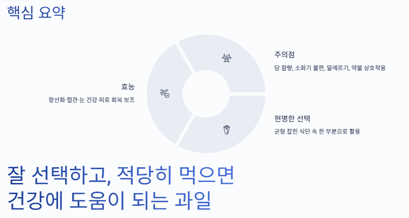 “좋은 과일이지만, 기적처럼 과장할 필요는 없는 식품” 정도로 보는 것이 적절합니다.