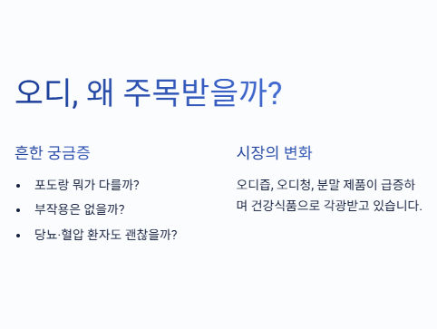 오디는 그 옆에서 도움을 줄 수도 있는 음식 정도로 보셔야 안전합니다.
