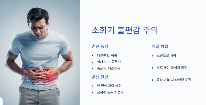 과량 섭취 시 소화기 불편, 알레르기 반응,