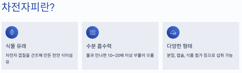 핵심은 **‘물과 만나 부풀어 장에서 젤처럼 작용하는 식이섬유’**라는 점입니다. 이 성질 때문에 여러 가지 건강 효과가 나타납니다.