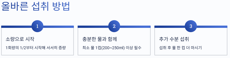 - 물 없이 먹으면 안 된다 – 충분한 수분이 없으면 오히려 변비·장막힘 위험