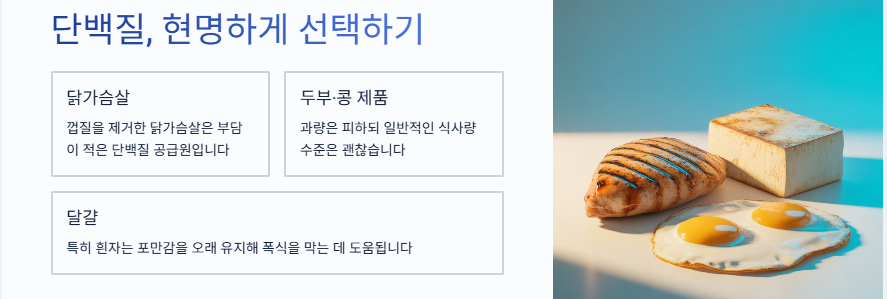 ③ 체중 관리에 좋은 단백질 – 닭가슴살, 두부, 달걀