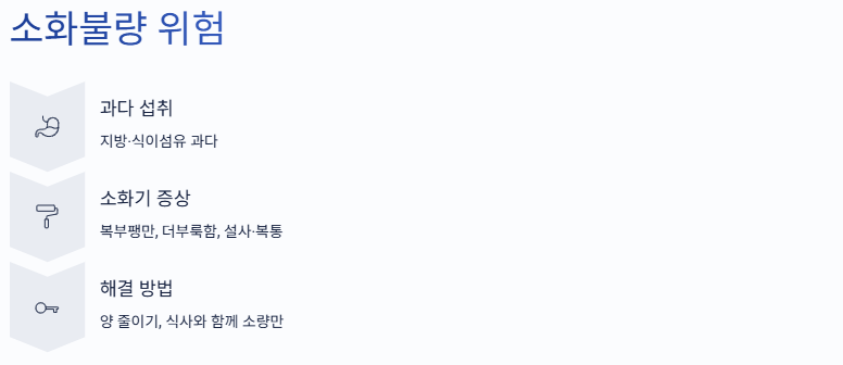 - 소화기 민감한 분은 많이 먹을 경우 복부팽만·소화불량 유발 가능
