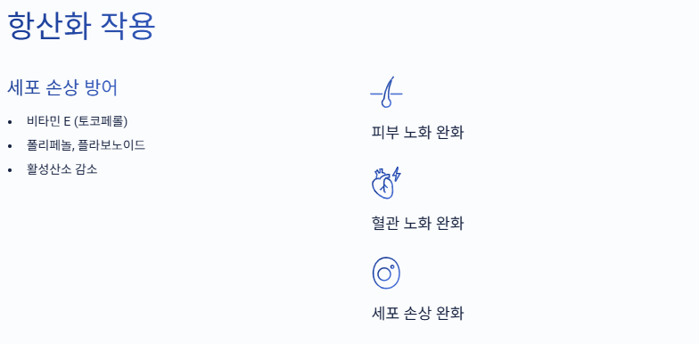- 폴리페놀, 플라보노이드 같은 항산화 성분