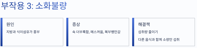 - 소화기 불편감 → 위장이 약한 분은 소량부터