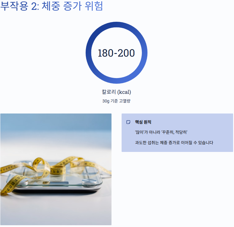 - 단백질·식이섬유 → 포만감 유지, 간식·혈당 관리에 간접적 도움